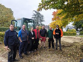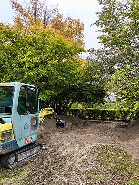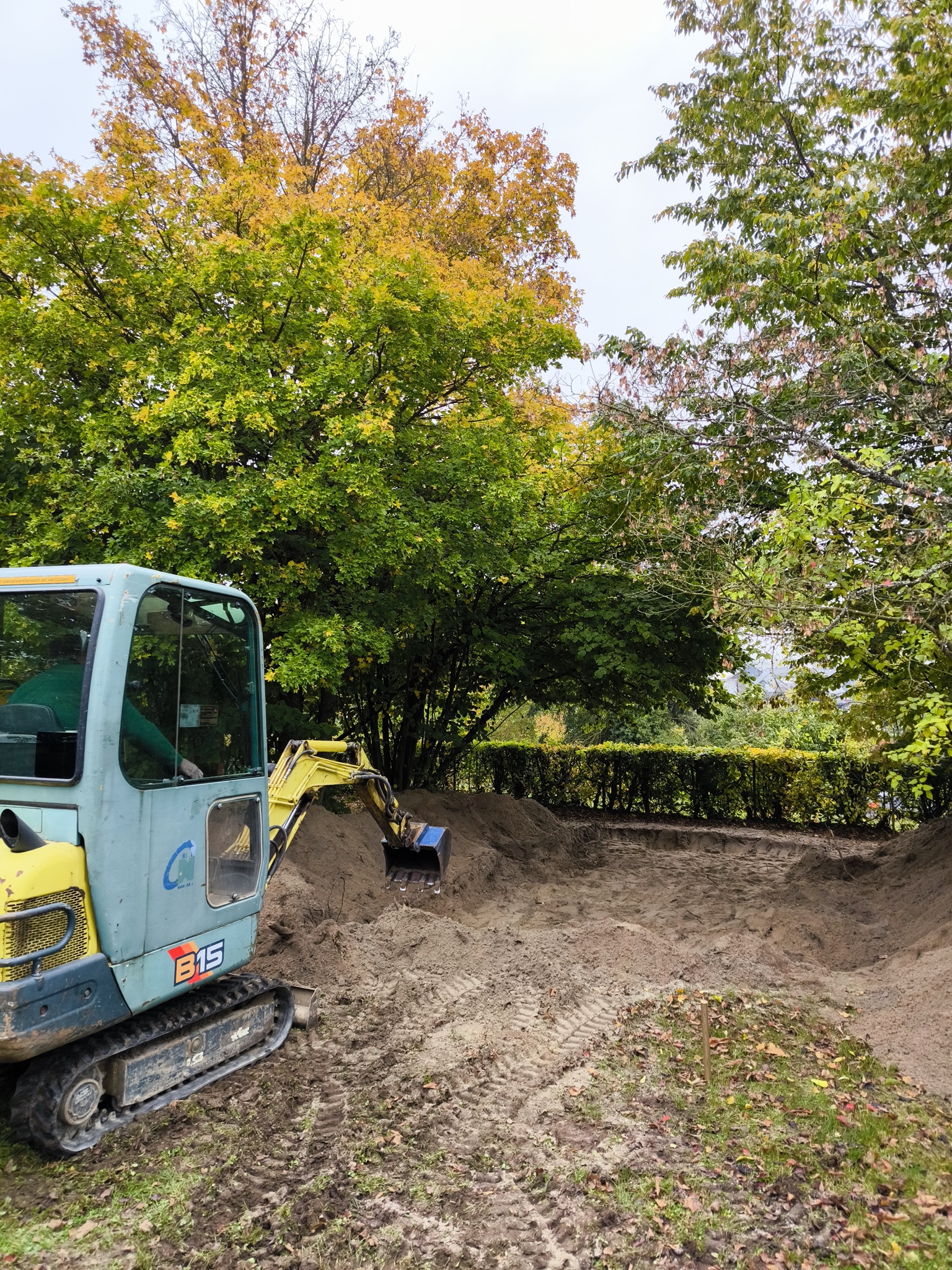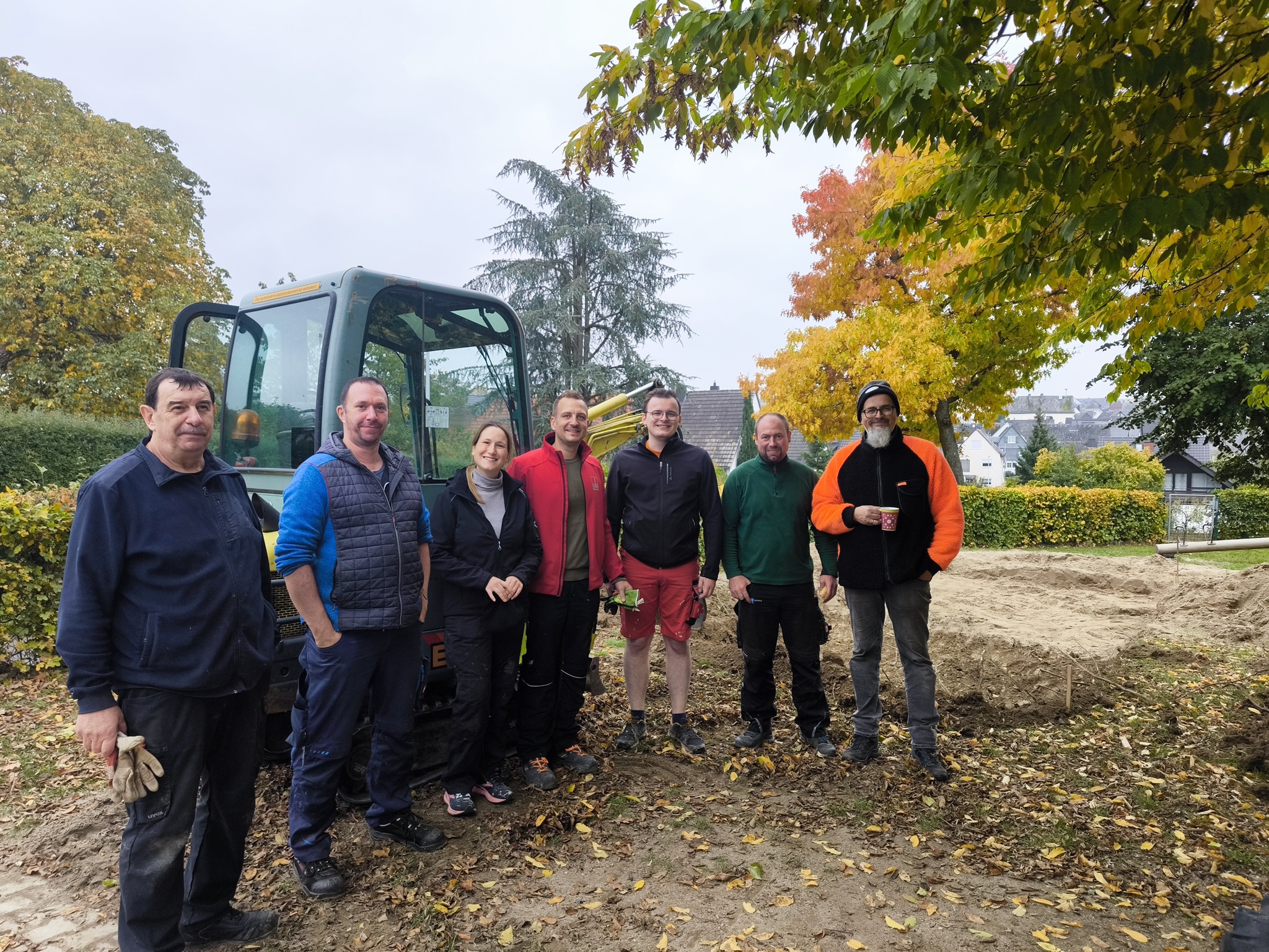 Am Samstag, den 11.10.2025, trafen sich fleißige Helferinnen und Helfer am Kinderhaus Rappelkiste zu einem gemeinsamen Arbeitseinsatz. Anfang November werden die neue Nestschaukel und die neue Doppelschaukel geliefert und montiert. Dazu müssen die Fundamente raus und der Fallschutzbereich vorbereitet werden. Marcus Kesser rückte mit seinem Bagger an, um die Gruben auszuheben und die Fundamente zu entfernen. Die anderen fingen per Hand an, den Sand und die Erde aus der anderen Grube zu entfernen. Dabei wurde festgestellt, dass die dort vorhandenen Fundamente so groß sind, dass sie nicht ohne Weiteres rauszubekommen sind. Glücklicherweise war mit Jörg Hinrichs derjenige da, der mit seiner Firma auch die Spielgeräte liefert. So konnte er uns vor Ort direkt sagen, wie groß die Gruben sein müssen und dass ein Teil der Fundamente im Erdreich bleiben kann. Währenddessen fuhr ein Teil der Gruppe an den Friedhof, um dort einen Teil der Hecke zu schneiden und die alte Grünabfallgrube auszuheben. Nach circa 3 Stunden konnte der Arbeitseinsatz beendet werden. Anschließend wurde sich bei Getränken und einem kleinen Imbiss gestärkt. Hierfür vielen Dank an Karola und Klaus-Peter Michel, die Getränke und Essen spendiert haben, und an Martina Colonius-Metz, die es besorgt hat. Natürlich herzlichen Dank an alle, die am Samstag dabei waren und gemeinsam geholfen haben. Das ist nicht nur gut für den Zusammenhalt, sondern spart der Gemeinde viel Geld, das dann an anderer Stelle ausgegeben werden kann.