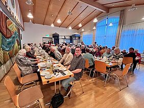 Letzten Samstag fand die gemeinsame Seniorenadventsfeier der Kirchen- und Ortsgemeinde im Sport- und Gemeindezentrum statt. Wir hatten – basierend auf den Teilnehmerzahlen der vergangenen Jahre – optimistisch 72 Stühle gestellt. Doch in diesem Jahr reichte das nicht aus: Alle Plätze waren belegt, und es musste sogar noch ein Tisch angebaut werden!